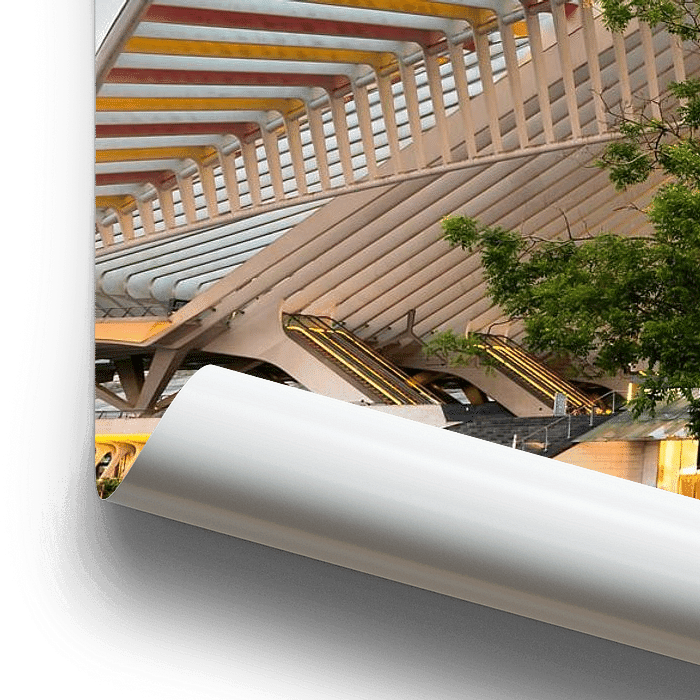 Photo d'architecture de l'extérieur de la gare de Liège-Guillemins, dans la ville de Liège (Belgique).