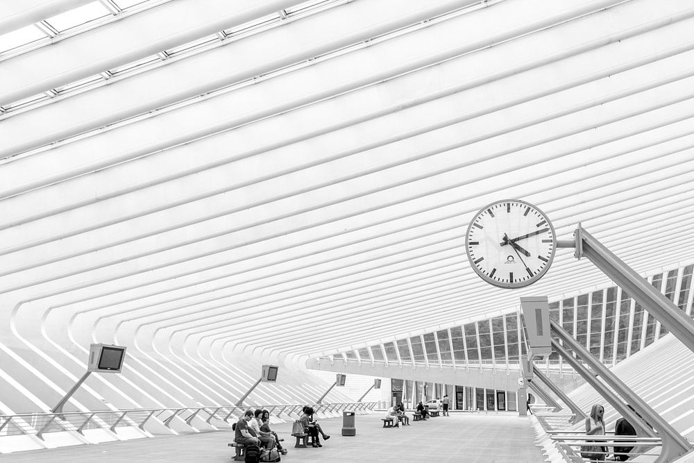 Gare de Liège-Guillemins à Liège (Belgique). Cette station conçue par l'architecte Santiago Calatrava est un bel immeuble futuriste par beaucoup de lignes.