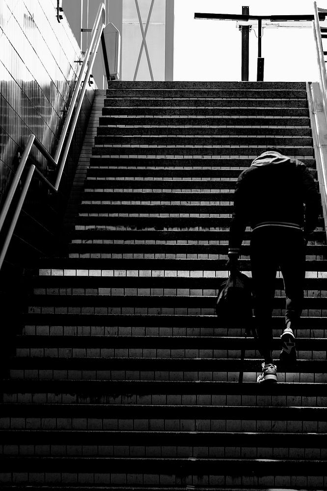 Prise de vue atmosphérique en noir et blanc de la gare de Moerwijk à La Haye.
