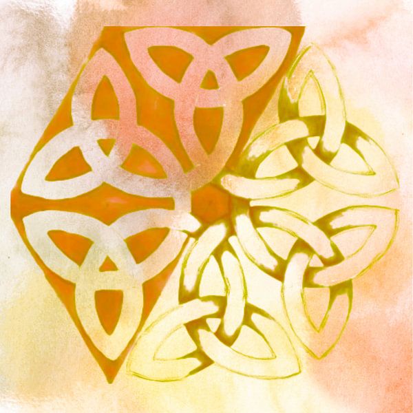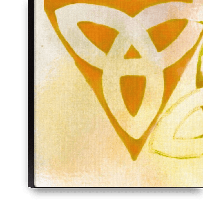 Cette reproduction artistique abstraite allie la symbolique celtique à la géométrie moderne. Les formes de triquetra se fondent dans un cercle aux teintes chaudes de rouge-orange et de vert vif, sur un fond aquarelle tout en douceur. Le résultat est une composition harmonieuse et spirituelle qui respire la sérénité et l'équilibre. Idéal…