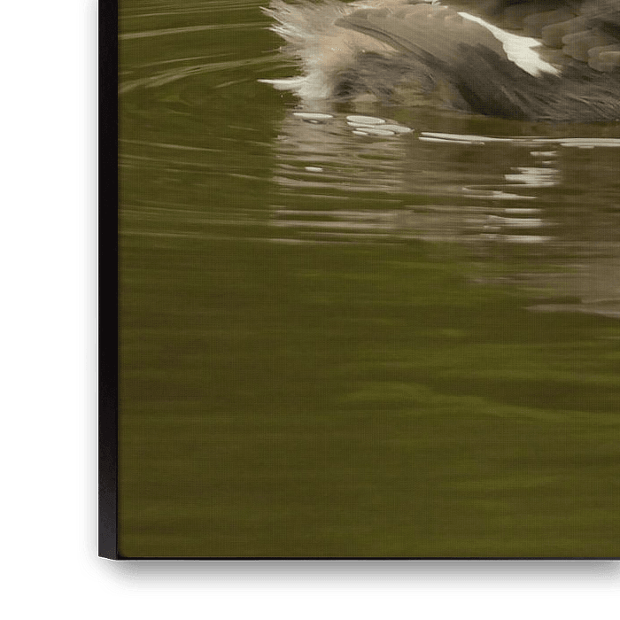 Een futenkoppel met jongen. De kleintjes zitten graag hoog en droog onder de vleugels op de rug.