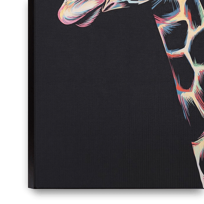 Achetez cette œuvre d'art abstraite Girafe colorée sur fond noir par Art & Soul Creations sur toile, aluminium, ArtFrame ou photographie (encadrée), impression d'art en haute qualité et tout format.