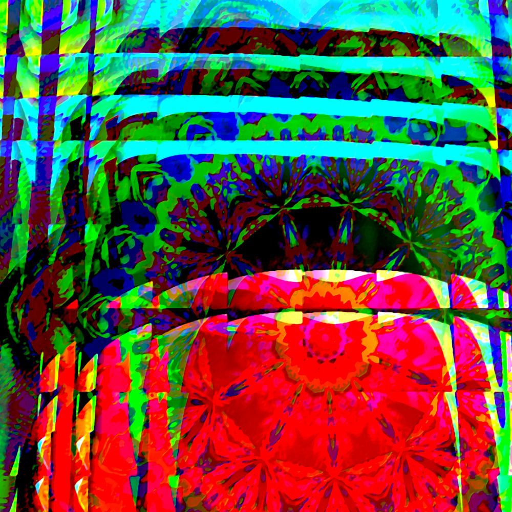 Das Bild stellt einen geriffelten Glasklotz dar, mit einem bunten Hologramm im Inneren. Das bunte Umgebungslicht bricht sich in den Riefen ...