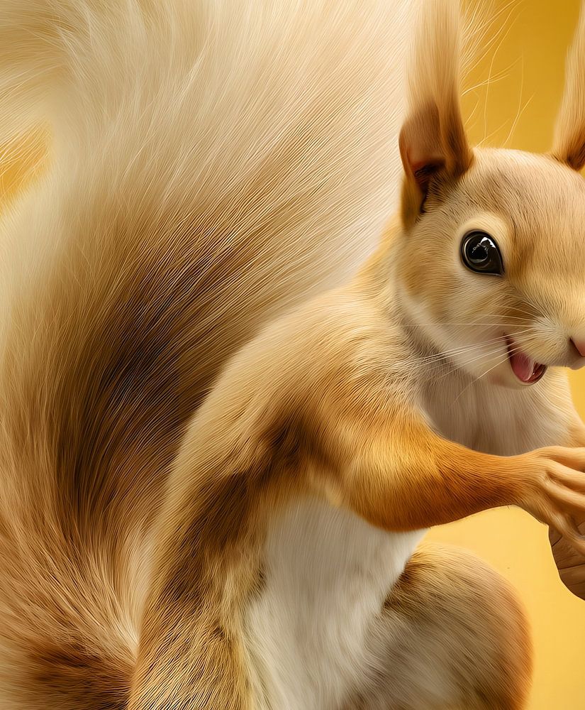 Portrait fantaisiste d'un écureuil joyeux avec des noix, principalement dans des tons bruns et ocre.