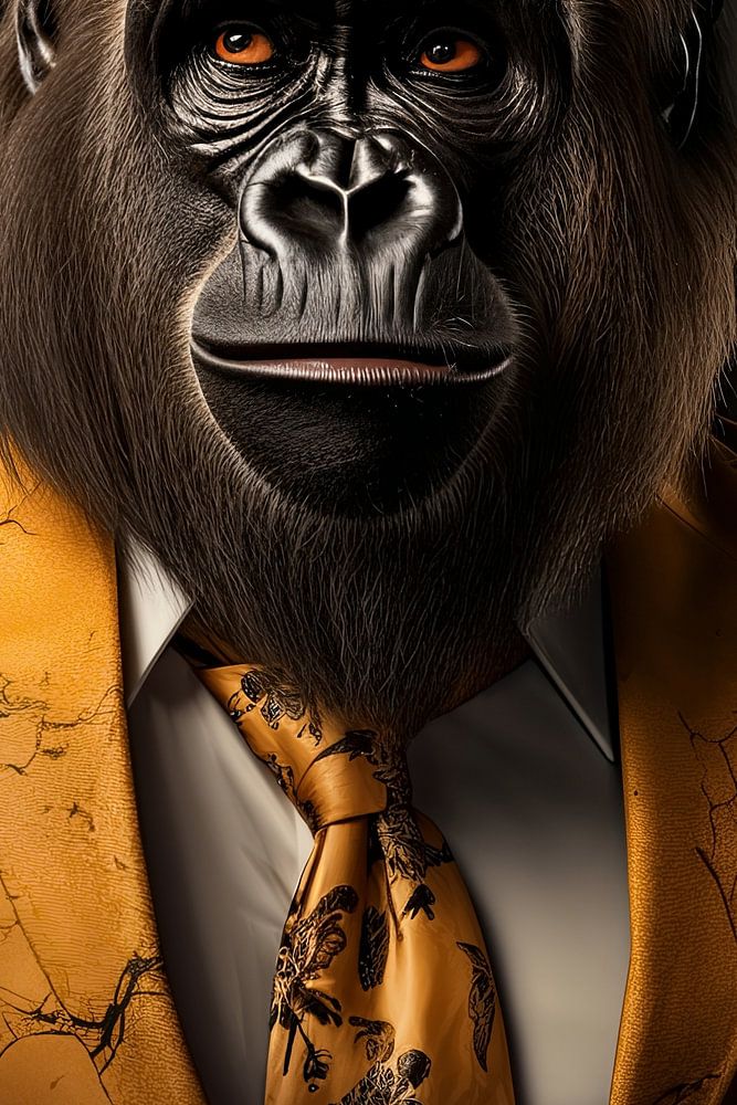 Acheter ce art numérique Gorille en costume par Wall Wonder sur toile, aluminium, ArtFrame ou photographie (encadrée), impression d'art en haute définition et tout type de format.