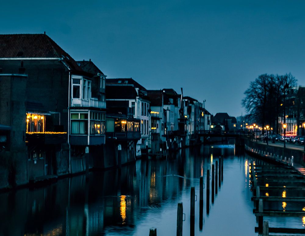 Le vieux port dans le magnifique centre historique de Gorinchem. (NL) Il fait presque nuit et donc la belle lumière bleue.