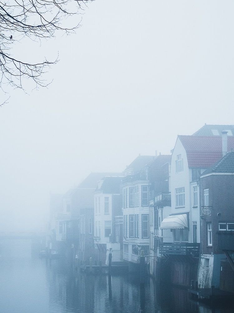 La plus belle ville fortifiée des Pays-Bas, Gorinchem, par un matin brumeux. La photo a été prise dans le centre ville depuis le Visbrug, avec vue sur le Langedijk et les douves.