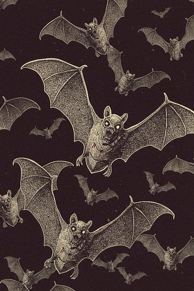 Ce motif complexe présente une nuée de chauves-souris réalistes sur un fond sombre et texturé, capturant l'essence lunatique de l'illustration victorienne vintage. Chaque chauve-souris est rendue avec un travail au trait fin, mettant en valeur les textures naturelles de leurs ailes et de leur fourrure. Cette pièce est un must pour les…