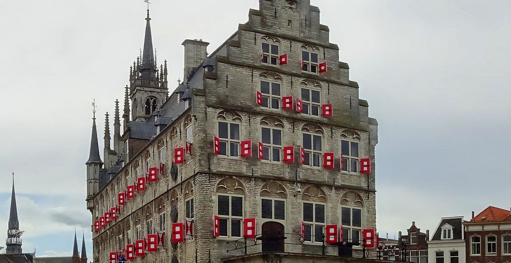 Marktplatz und Rathaus in Gouda in der Provinz Südholland in den Niederlanden