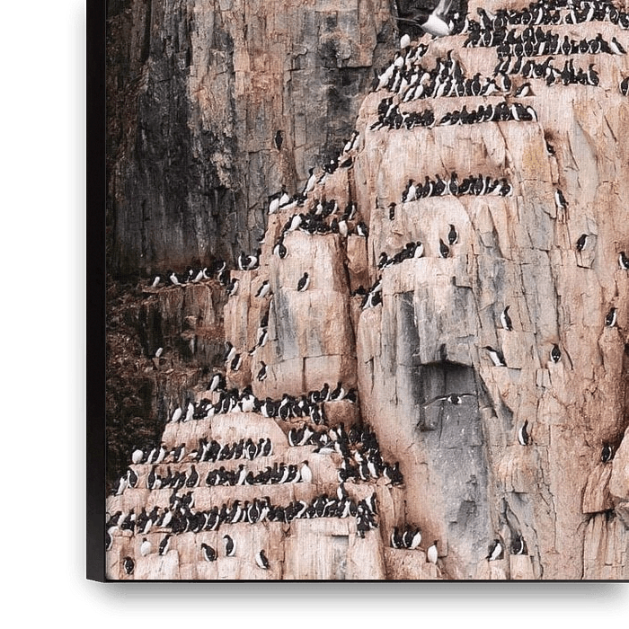 Achetez cette œuvre d'art d'oiseau Grand groupe de petits pingouins sur un rocher au Svalbard par Caroline Piek sur toile, aluminium, ArtFrame ou photographie (encadrée), impression d'art en haute qualité et tout format.