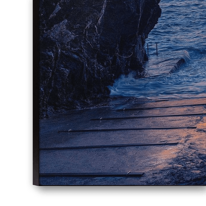Achetez cette œuvre d'art de paysage Grande éclaboussure d'eau après une grosse vague frappant la côte au coucher du soleil par Robert Ruidl sur toile, aluminium, ArtFrame ou photographie (encadrée), impression d'art en haute qualité et tout format.