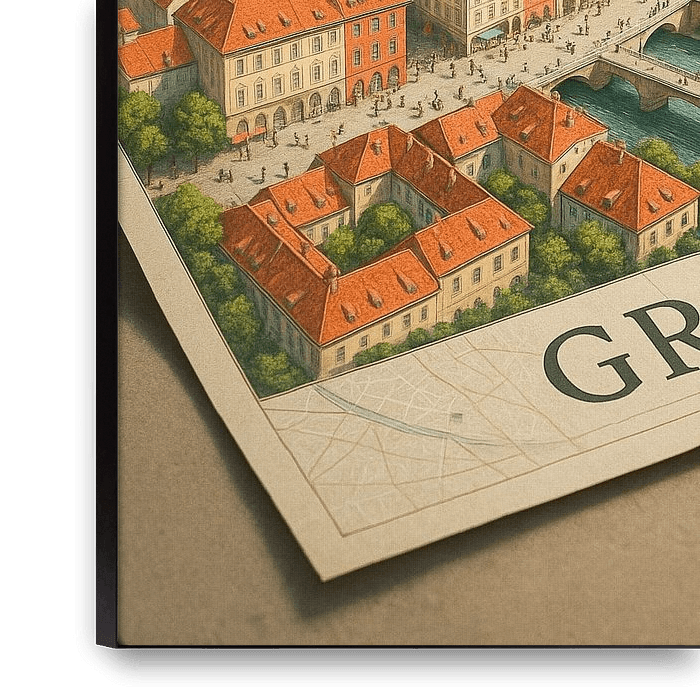 Achetez cette œuvre d'art de paysage Graz Clock Tower Schlossberg 3D Map - Styria Capital Wall Art par Travel Shop sur toile, aluminium, ArtFrame ou photographie (encadrée), impression d'art en haute qualité et tout format.