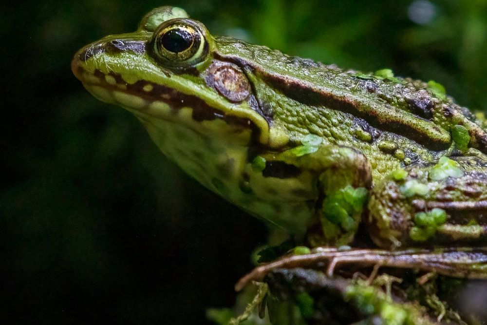 La grenouille verte est un amphibien qui vit principalement dans les étangs et les fossés. On peut très bien entendre son coassement lorsqu'on vit à côté d'elle. Elle se nourrit principalement d'insectes qu'elle attrape au vol avec sa langue.