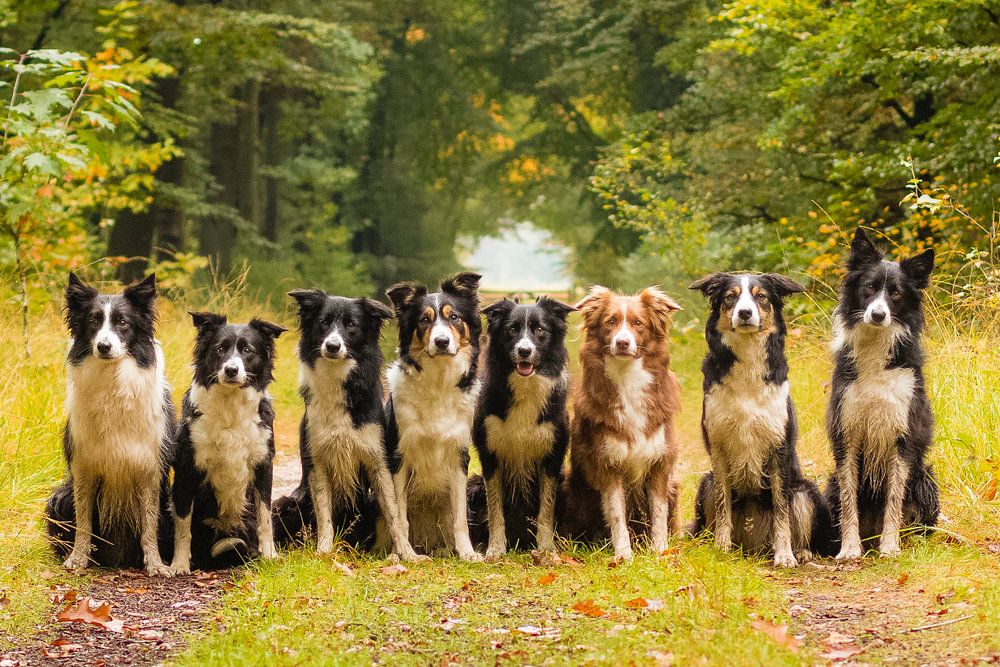 Deze border collies zijn door de jaren heen hechte vriendinnen geworden! Tijdens een wandeling maken we dan ook altijd een groepsfoto van alle border collies die mee zijn.
