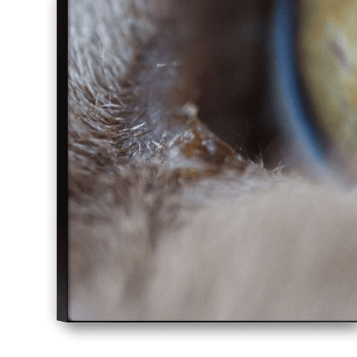 L'œuvre montre un gros plan d'un œil de chat, photographié avec un objectif macro. Elle capture des couleurs, des textures et des reflets qui passent normalement inaperçus. L'inspiration vient d'une fascination pour les yeux des animaux et l'émotion qu'ils dégagent. L'atmosphère est intime et mystérieuse, avec un équilibre entre calme et curiosité. Techniquement, il s'agit de lumière naturelle, de profondeur de champ limitée et de pureté sans montage. Dans un intérieur, la sculpture forme un pôle d'attraction serein mais captivant qui s'adresse surtout aux amoureux des animaux et aux amateurs d'art.