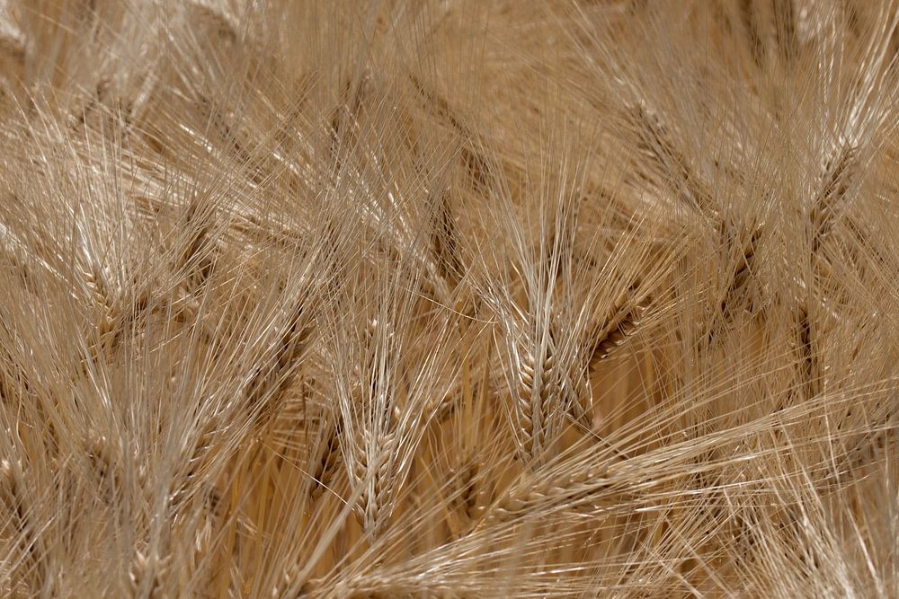Gros plan d'un champ d'orge. L'orge est reconnaissable aux longs poils de ses épis.