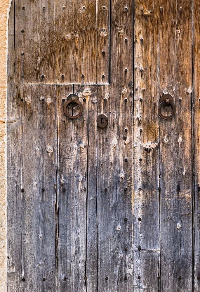 Gros plan d'une vieille porte d'entrée en bois entrée de résidence par Alex Winter