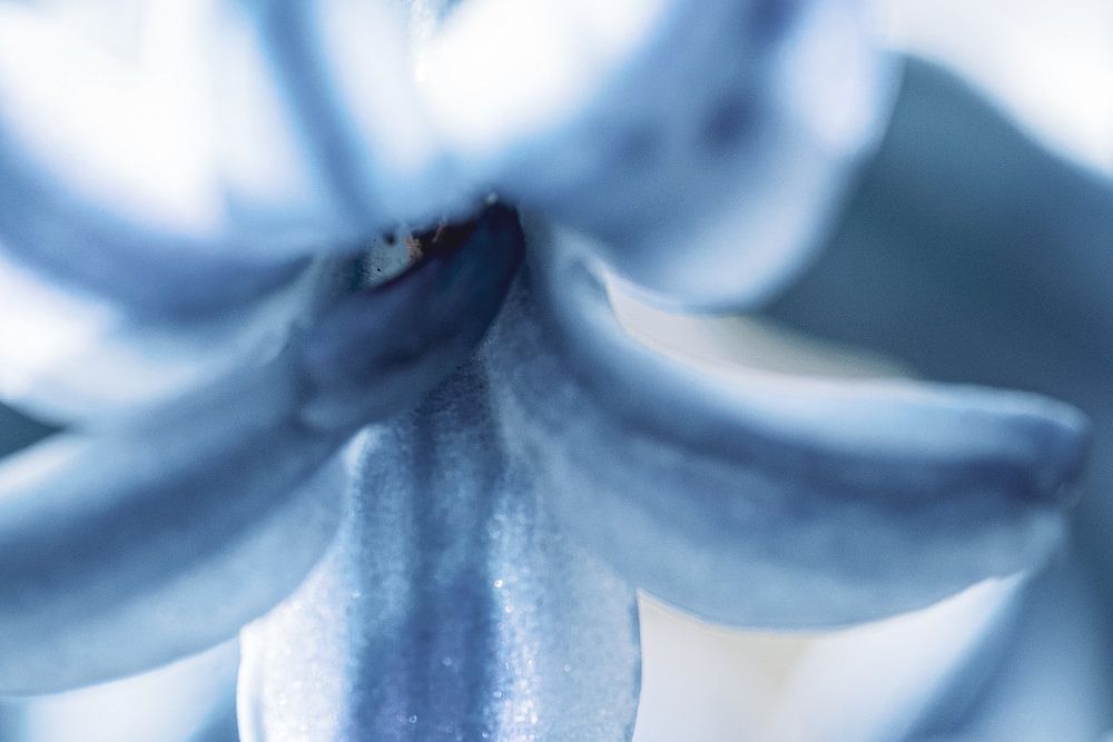 Une image artistique de ce magnifique bulbe de fleur dans une atmosphère romantique et douce avec une couleur bleu clair intense et pastel. Une belle impression pour un intérieur ou un bureau avec une image intemporelle d'un produit d'exportation néerlandais. La jacinthe est une plante bulbeuse qui sent bon. Ils viennent à l'origine de la petite Asie centrale.
