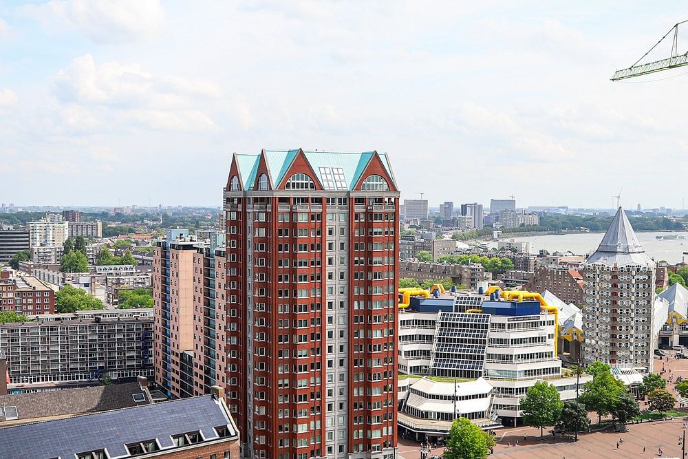 La Grotekerkplein de Rotterdam, vue du haut de la Laurenskerk.
