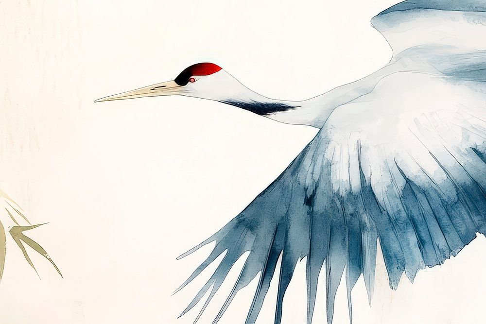 Grue en vol - Art asiatique de l'aquarelle par Poster Art Shop