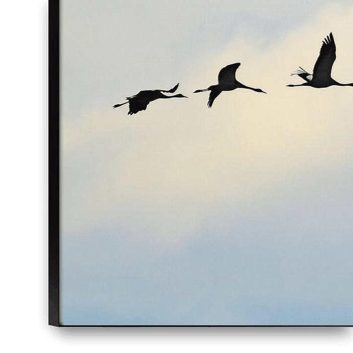 Achetez cette œuvre d'art d'oiseau Grues volant dans les airs lors de la migration d'automne par Sjoerd van der Wal Photographie sur toile, aluminium, ArtFrame ou photographie (encadrée), impression d'art en haute qualité et tout format.