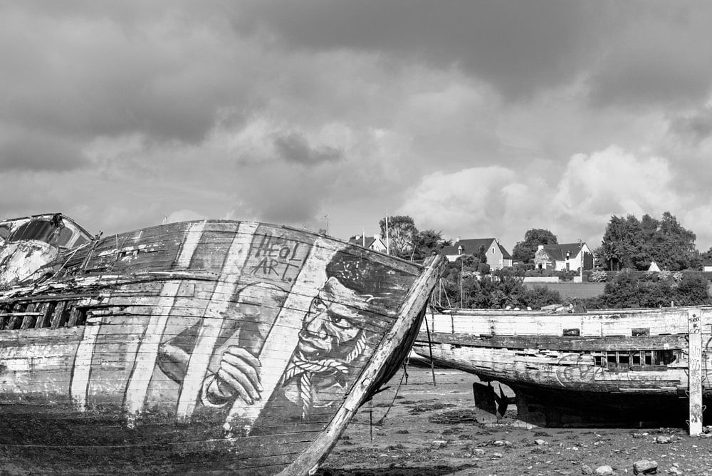 HDR urbex Cimetiere a bateaux ship graveyard at Quelmer brittany