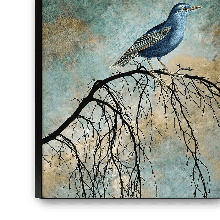 Création de textures de nuages surréalistes, abstraites, lumineuses et d'apparence céleste dans des tons doux de blanc, de bleu et de jaune. Combiné avec une vieille photo d'oiseau tirée d'un imprimé d'histoire naturelle datant d'environ 1860 (domaine public, ressources gratuites de The Graphics Fairy) ; assis sur des branches. En fonction de mon propre style, bien sûr.