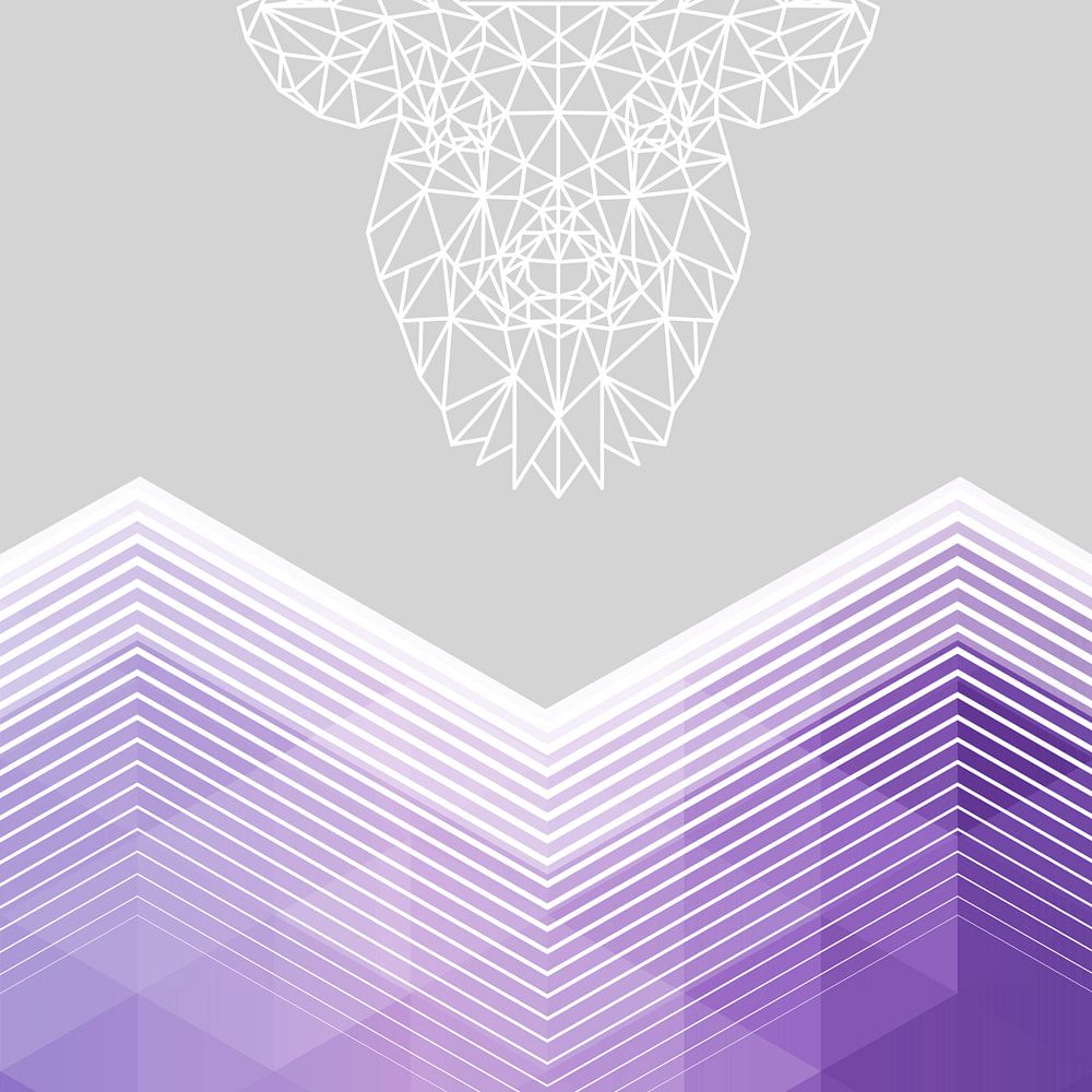Motif en chevron polygonal combiné à une tête de cerf géométrique. Tons gris, blancs et lilas. 2017 par Pia Schneider | atelier COLOUR-VISION.
