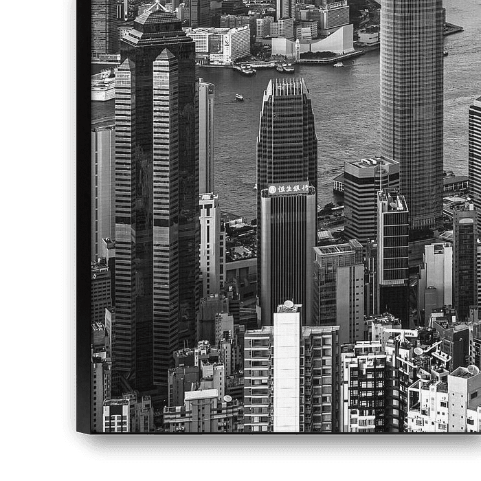 Hong Kong - Vue en élévation du port de Victoria en noir et blanc
