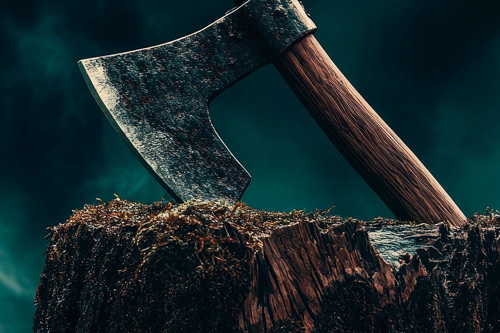Hache sur souche - Scène naturelle par Poster Art Shop