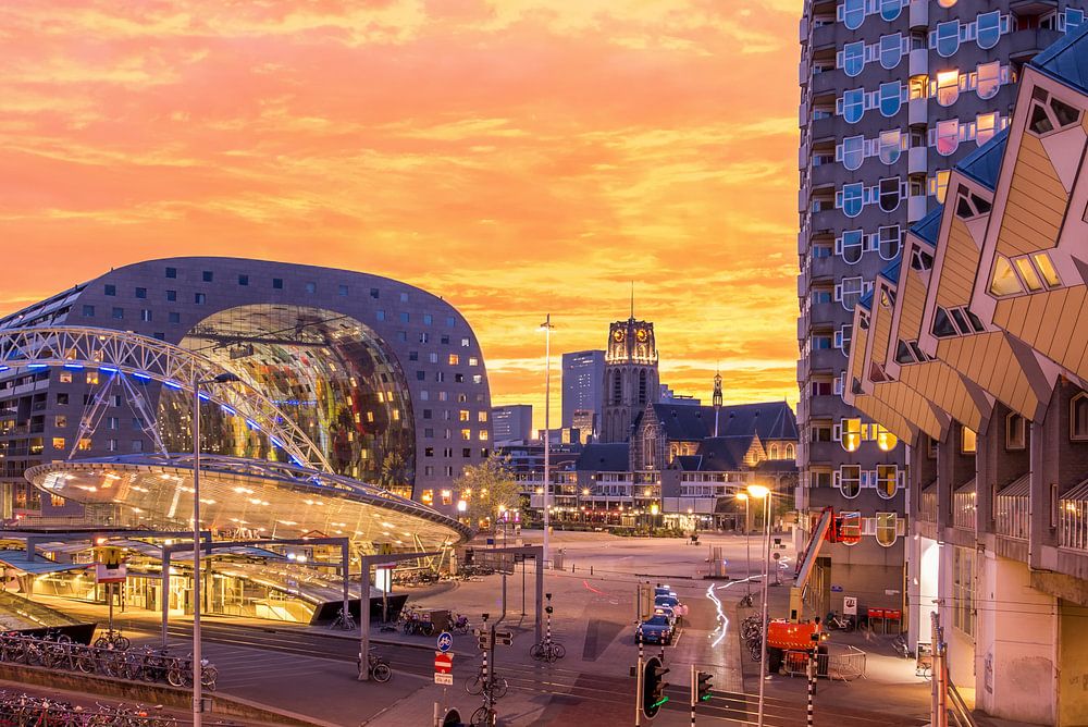 Achetez cette photo de Rotterdam Halle du marché, gare Blaak et maisons Cube par Prachtig Rotterdam sur toile, aluminium, ArtFrame ou photographie (encadrée), impression d'art en haute qualité et tout format.
