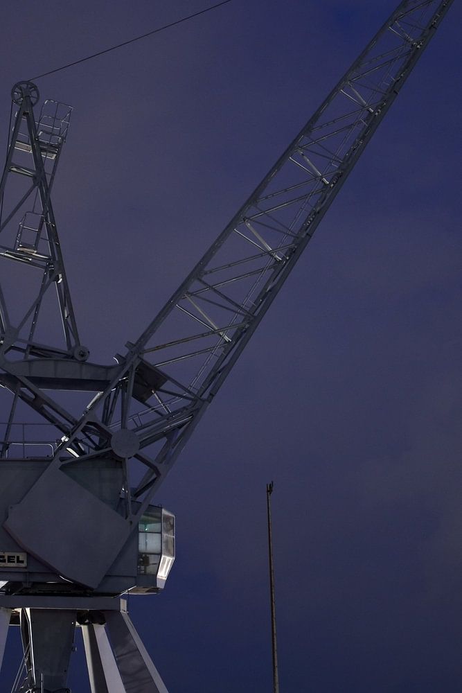 Ancienne grue portuaire, de la société Kampnagel, dans le quartier moderne du port de Hambourg.