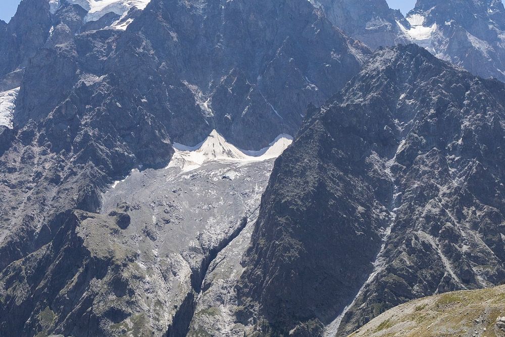 Vues des magnifiques sommets enneigés du parc national des Ecrins, France en été. Près de Pelvoux.
