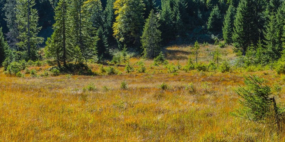 Un petit sentier serpente à travers la tourbière, longeant des surfaces d'eau silencieuses et miroitantes et de mystérieux yeux de tourbe qui scintillent au soleil comme des trésors cachés. Ici, dans cette nature intacte, le temps semble s'être arrêté. La tourbière révèle sa beauté indomptée et rappelle à quel point de tels moments dans la nature sont précieux et éphémères. Au milieu de ce décor, enveloppé dans le silence paisible et le parfum de la mousse humide et des feuilles d'automne, le randonneur peut laisser son âme vagabonder et ressentir la force de la nature dans sa forme la plus pure.