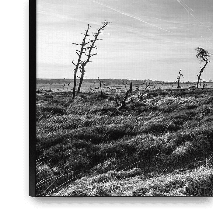 Achetez cette œuvre d'art de paysage Hautes Fagnes en noir et blanc - 1 par Edwin van Wijk sur toile, aluminium, ArtFrame ou photographie (encadrée), impression d'art en haute qualité et tout format.