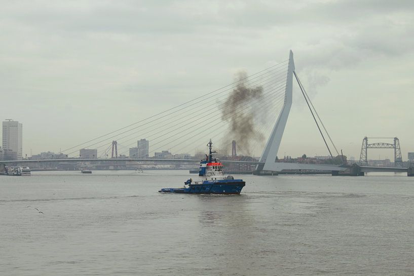 "Herkenbaar" Nederlands? De Erasmusbrug op een grijs/grauwe dag met havenautoriteit op de voorgrond.