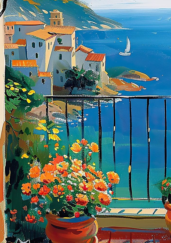 Henri Matisse Style Poster, Méditerranée, fenêtre ouverte, pastel par Niklas Maximilian