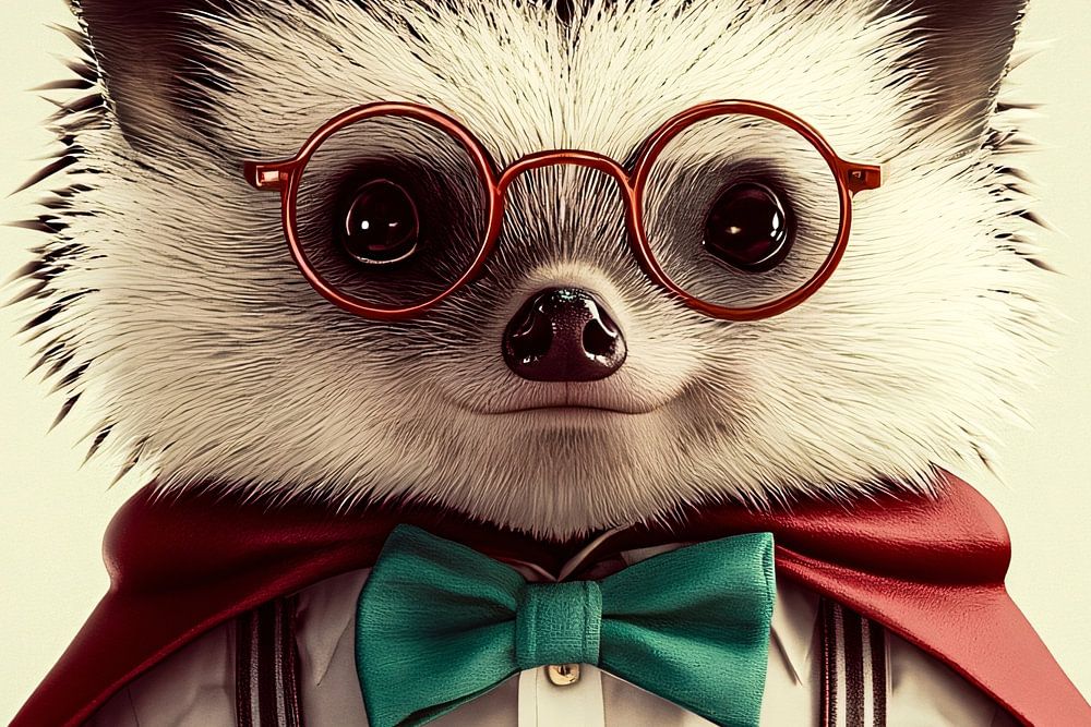 Ce dessin unique représente un charmant hérisson qui se distingue par ses jolies lunettes et sa cape élégante. Parfait pour les amoureux des animaux et de l'art, avec une touche ludique. Cette image allie l'élégance à la sophistication et s'intègre parfaitement dans les intérieurs modernes. Ce motif vous fera sourire et ajoutera une touche d'originalité à n'importe quelle pièce.