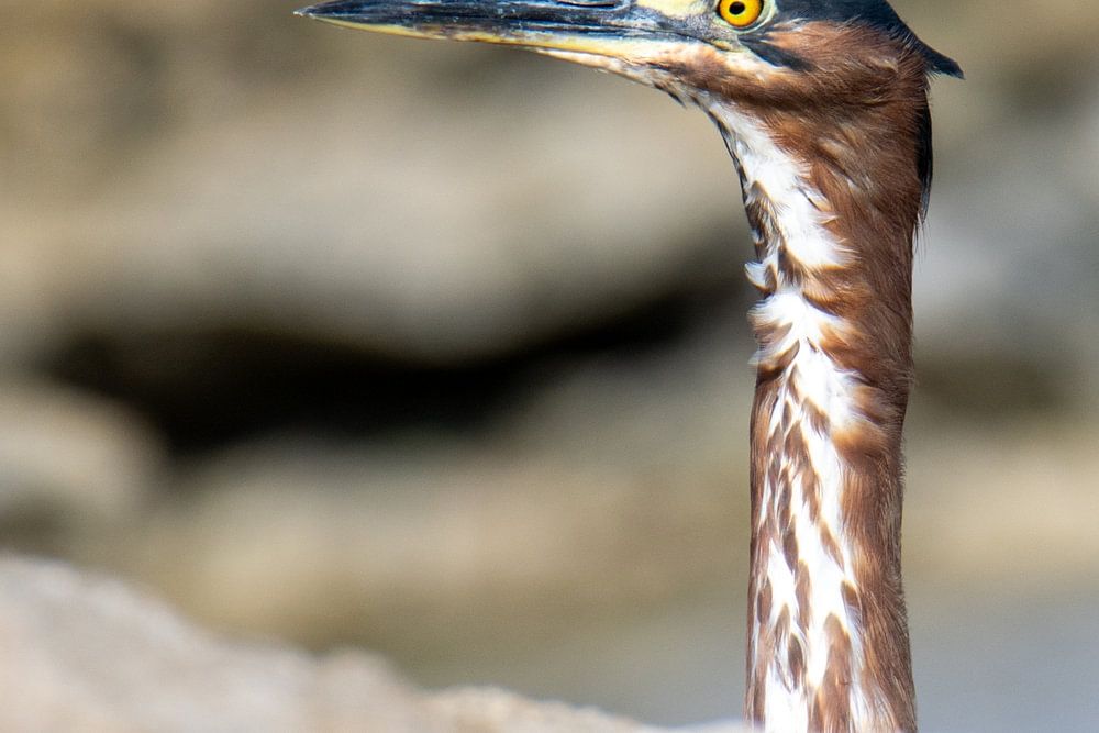 Ce héron vert se cachait derrière un rocher. Il a tout de même eu la curiosité de passer la tête au-dessus du rocher pour observer le photographe.