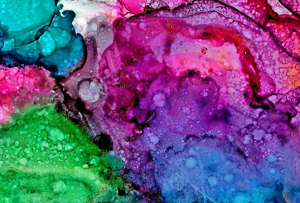 Un hibiscus rose, c'est comme une fleur avec des bulles et des bulles, dessiné ici avec de l'encre à l'alcool. Les couleurs sont superposées et se mélangent magnifiquement. / Art abstrait / Art moderne / Nature morte / Illustration / Art moderne / Dessin /