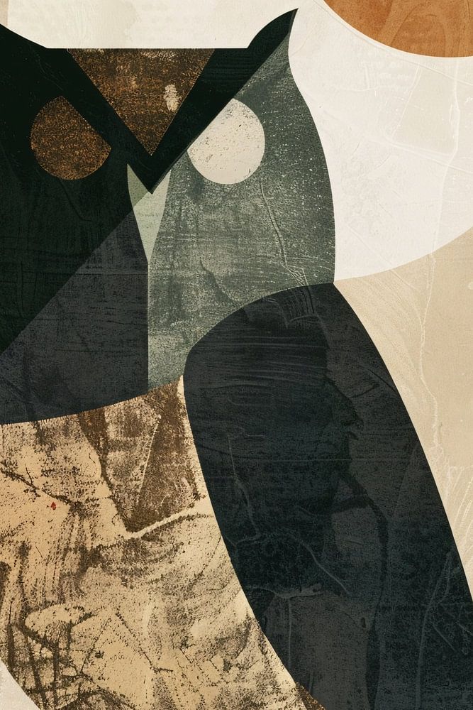 A propos de "Hibou abstrait aux formes géométriques et aux tons neutres"