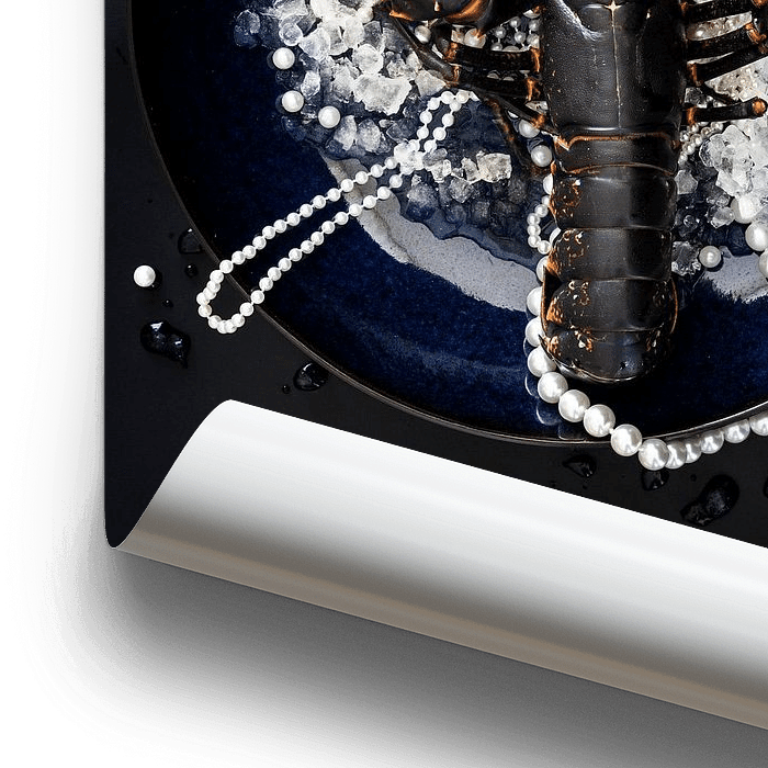 Ce homard est spécial et méritait d'être représenté de manière élégante. C'est pourquoi le homard repose sur un lit de perles.
