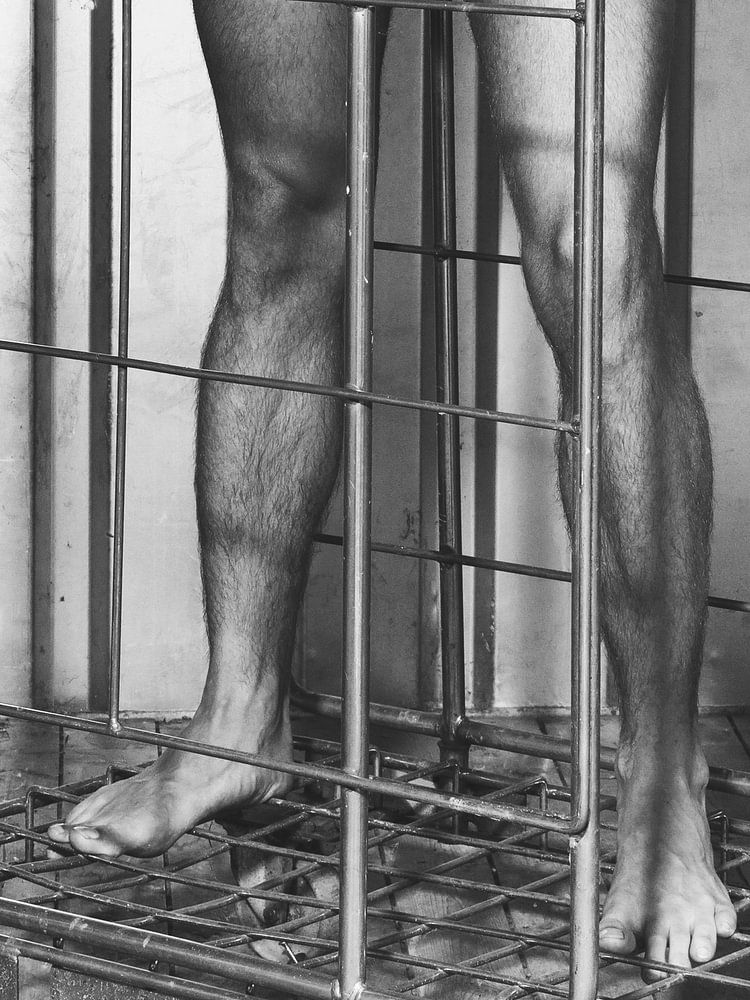 Achetez cette photo Homme nu debout dans un conteneur à roulettes #9135 par Photostudioholland sur toile, aluminium, ArtFrame ou photographie (encadrée), impression d'art en haute qualité et tout format.