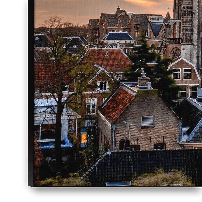 De Hooglandse Kerk in het centrum van Leiden op een herfstige dag vanaf de Burcht.