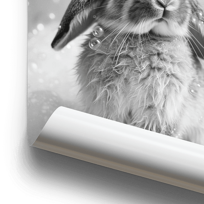 Cet adorable tableau de salle de bain capture le moment où un lapin curieux sautille dans la baignoire, ajoutant une touche de mignonnerie à votre salle de bain. La photographie en noir et blanc met en valeur les détails de l'image et lui confère une élégance intemporelle, tandis que l'image elle-même constitue un ajout charmant et…