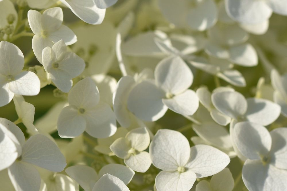 Magnifique hortensia blanc, agréable de voir comment tant de petites fleurs forment une grande fleur.