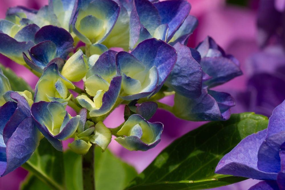 Il n'y a rien de plus printanier qu'un bel hortensia en fleurs avec ses couleurs fraîches et vives. Certains hortensias, comme celui de la photo, changent de couleur. Tout est lié au sol et aux matières premières. Un sol acide produit des fleurs bleues et un sol calcaire des fleurs roses. Les feuilles fraîches et vertes ne tombent qu'en automne, vers l'hiver.