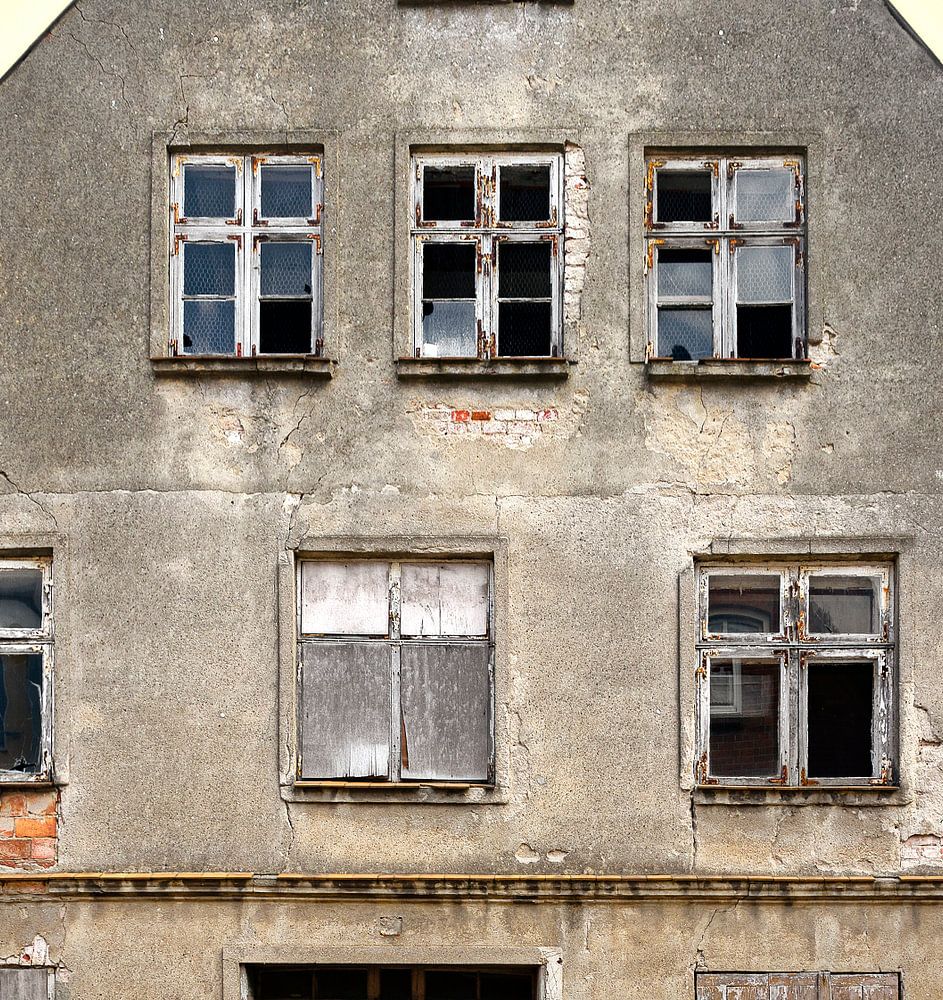 Giebelseite eines alten desolaten und unbewohnten Hauses in Barth, Deutschland