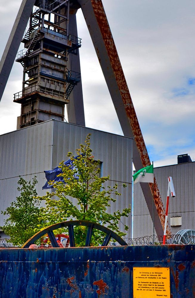 Blick auf den Förderturm der Zeche Hugo in Gelsenkirchen