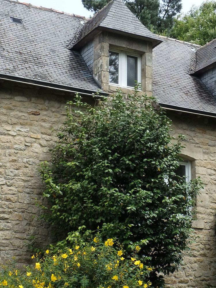 Foto gemaakt in Frankrijk - Quimper. Huis met bloemenstruik ervoor.